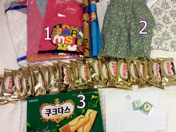 (2) 在永登浦的時裝店買的衣服,價錢忘記了,大概是幾千韓圜吧?