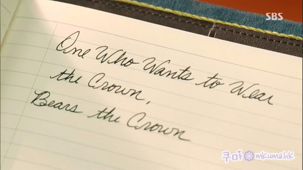 哈哈 又是我~ 我覺得這個劇情的確不是很吸引, 要不是有這麼多帥哥美女, 我想我就不會看了. 不過人物描寫也的確值得一讚! 樂觀點想的話, 就想成既然有那麼多帥哥美女, 就給他們多點機會表現演技吧~XDD 我覺得年青主角們的描寫可以多一點, 至於老一輩的描寫應該是為了帶出這些年青人的背景吧, 所以希望接下來不要那麼多. 編劇大人!請把重點放在帥哥美女身上吧, 尤其是金誕和恩尚!!要不然太複雜了!而且我想年青人們才是繼承者, 要扣緊題目"欲戴王冠,必承其重", 就要讓年青人們有多些成長! 還有就是接下來就要開學了, 而且英道也要加入戰團, 雖然我蠻喜歡兩男爭一女的戲碼, 可是那就表示金誕跟恩尚的對手戲就會比較少. 他們的對手戲可是這部戲的一大賣點, 而且是我最喜歡看的!! 希望他們的對手戲不要減少!!>< 最後, 我想說的是, 第4集最後那個找來找去的戲碼, 看得我好緊張! 我看的時候只有想到:"呀! 快點讓誕找到她!" "呀!找到了!" 我本來很開心他們又要一起生活, 可以朝夕相對了, 可能會有點像我的公主那裡, 會在家有很多粉紅. 不過當我看到你說金誕不想讓恩尚發現自己, 是因為不想讓她發現自己的身份的時候, 我突然間有種晴天霹靂的感覺0.0 呀!!!這下慘了!怎麼辦!!又要上演想愛不能愛, 想說不能說, 最後秘密揭穿女主角大怒的戲碼嗎?!?!?! 我不要!!千萬不要!!! 我只想要看粉紅, 希望男主角可以繼續保持一直以來爽直帥氣的個性, 而女主角不要因為他的身份而跟他保持距離><也希望編劇大人可以多幫幫忙^^ P.S.:我想恩尚是有喜歡誕的, 是有心動的, 只是礙於誕有未婚妻而跟他保持距離;) P.P.S.: 我覺得未婚妻搶走恩尚的入境申請表不是因為她在鬧, 而是因為她想幫誕拿恩尚的電話. 不知道這樣想對不對, 我也不確定他們的入境申請表要不要填電話XDD只是覺得她還沒有壞到、幼稚到那種程度, 而且經過誕的一罵, 她應該死心了一半? 我也不知道><還鬥就是照誕跟未婚妻說的那段話, 表示未婚妻一開始是喜歡金元的, 而不是金誕?我的理解正確嗎?