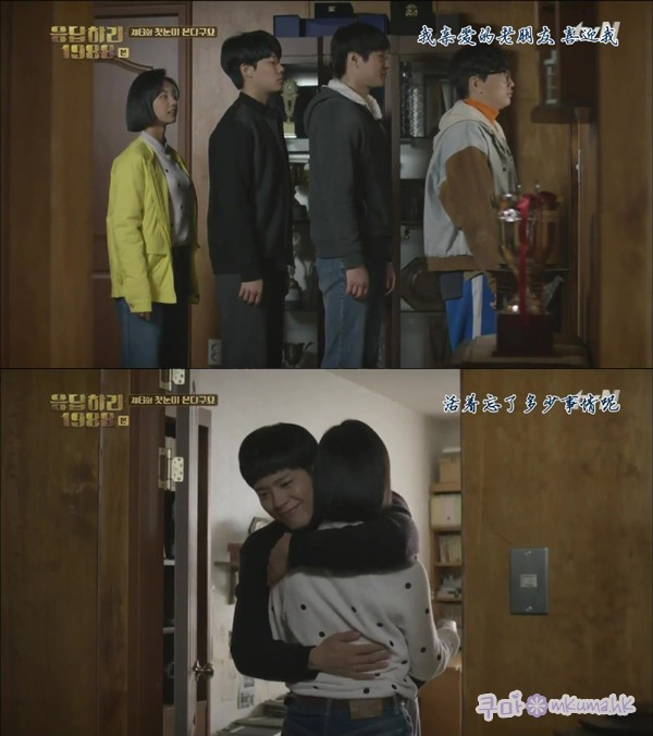 辛苦了紫熊!!!!另外謝謝你譯了正峰聊天室的對話 捨不得跟雙門洞道別,特別是5人組,特別是正煥 向來對於感情戲不是那麼投入,但一邊看正煥的告白,一邊流眼決。對編劇有點生氣不是因為正煥不是老公,而是戲份急速下降.....雖然正煥失戀了,但欣賞他可以完全(?)放下感情,以自己的方式繼續做暖男。好感度上升 澤我討厭不了..因為很帥(喂),做男友是也蠻MAN。跟德善一起好像小孩,bobo 我有點出戲XDD 看回88要自己一個人看,光是親情戲就令我哭。寶拉的婚禮我哭慘了