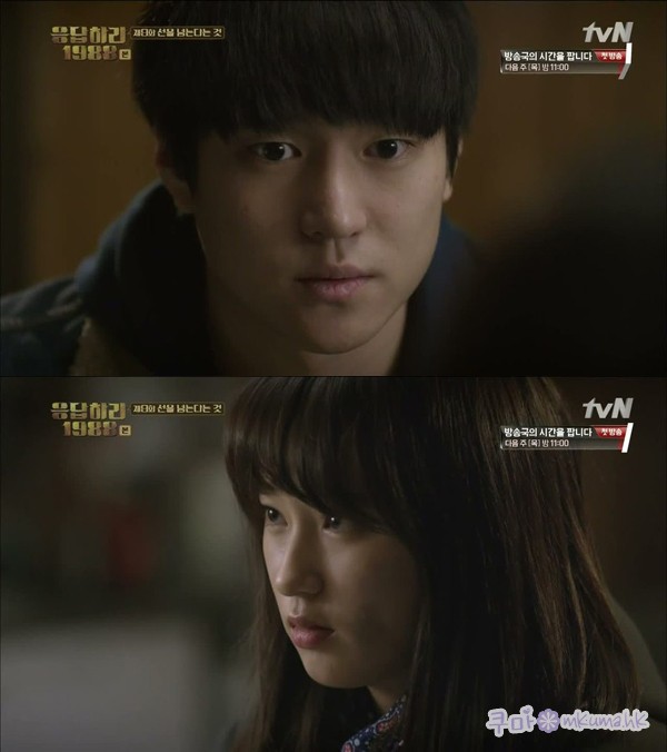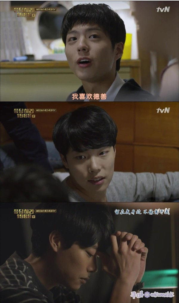 1.正煥會退讓是逼不得已,因為阿澤已經先開口說喜歡德善,正煥常常表面貶低德善,這時再說他也喜歡德善,他根本說不出口,而背地裡去對德善好,也違背了他對朋友的義氣,所以他只能放棄!!而阿澤會放棄是因為他知道如果他跟德善在一起,會傷害到正煥,所以他也只能放棄!! 2.正煥的感情我覺得德善是知道的,全部只有她知道不是開玩笑,因為正煥告白的那些回憶都是真的,但89年時阿澤那一吻,就已經讓德善頃心他了,對於正煥的告白,她也只能裝不懂!! 3.其實老公是誰我不在乎,正煥或阿澤都好,編劇為了要混淆觀眾,讓成年的老公演譯起來跟阿澤完全不同,反而像是是"正煥",讓我對阿澤這個角色很失望,落差極大!! 阿澤的中年有一個很好的範本,就是他的父親,阿澤跟她父親很像,成年後應該會像他父親那樣,也是沉默寡言,待人和善,而不是變成正煥那樣說話會帶刺,言不由衷!!