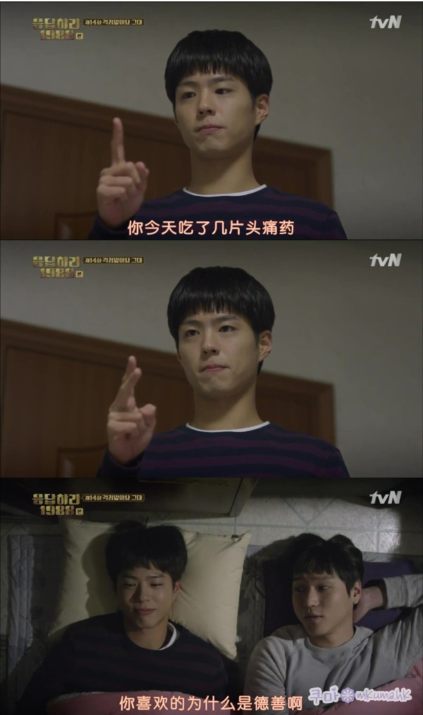 另一方面,在《請回答1994》飾演與真實年齡不符的老顏青年,在《請回答1988》中辭演比真實年齡大十年的角色,本來挺有趣,只是金成均過度誇張的舉動,對不是韓國人的我來說,不大好笑。
