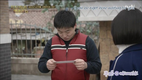 善宇收到神秘人送的糖果,那首歌名的意思是「我就只能給你愛」 (사랑 - sarang ),而寫在字條的意思是「我就只能給你糖果 (사탕 - satang)」。下一幕,德善口袋裡有一包糖果,誰是神秘人不言而喻。