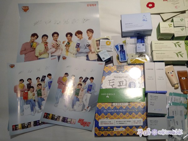 oh! 看到了EXO的海報 (心心眼 然後你在innisfree買好多耶 嘿嘿