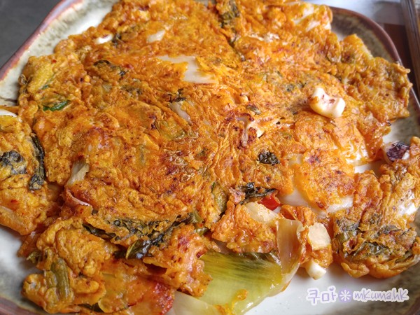 不過這個泡菜煎餅真的很難吃!如圖所示,沒腌好的泡菜一大塊一大塊的,而且味道很酸!只有酸味!
